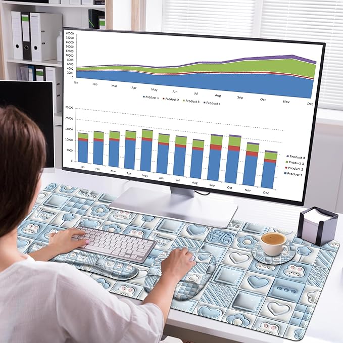 - 【Premium Materials and Workmanship】 The mouse pad with wrist rest and keyboard pad was printed by advance technology, covered by the superfine fabric. A keyboard and mouse pad has a soft and smooth surface, maximally enhances your gaming/working experience. Delicate double stitched edges protect the desk mat from wear, deformation. Environmental, non-toxic and safe to use.