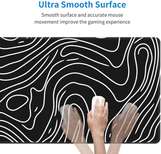 Desk Pad,Office Desk Mat 31.5"×11.8" Large Gaming Mouse Pad,Durable Extended Computer Mouse Pad,Waterproof Thick Big Mouse Pads with Non-Slip Rubber Base Office Home Black Topographic Map