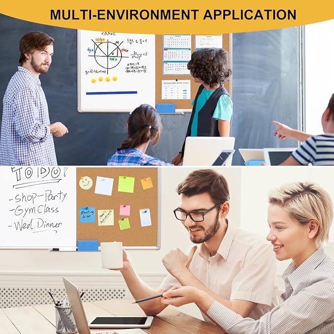 - 【High Grade Sturdy & Durable Construction】Features high-density cork (no crumbling) and a stain-resistant whiteboard that erases cleanly. Sturdy aluminum frame prevents warping.