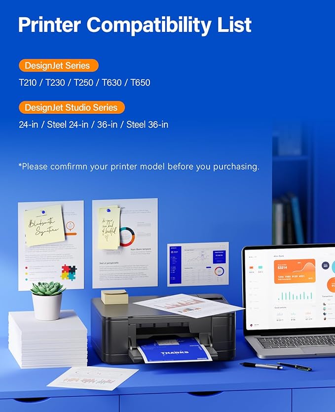 - 【Compatible Printer】Compatible for HP DesignJet: T210, T230, T250, T630, T650;HP DesignJet Studio: 24-in, Steel 24-in, 36-in, Steel 36-in Printer.
