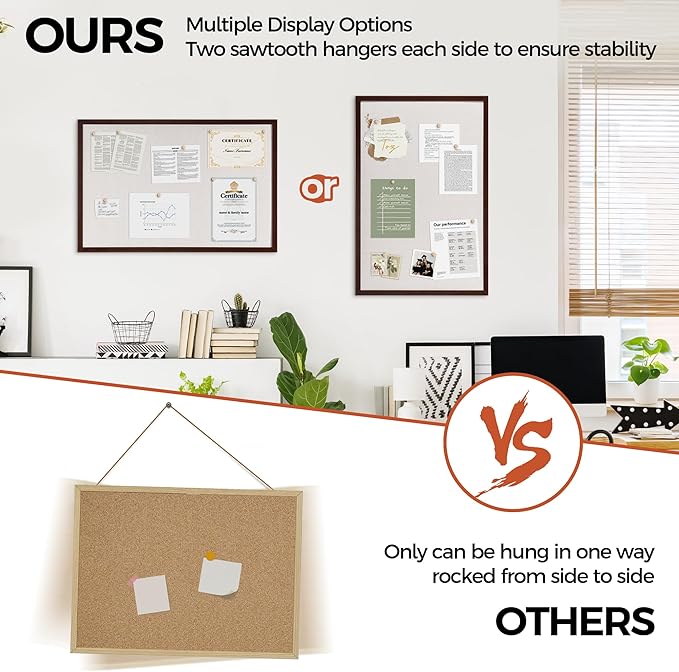 - Unique Design: Easily customize the board orientation to fit your space. Natural cork bulletin board add a classic look to your office or home. Both strong and stylish, it will be a great addition to your space.