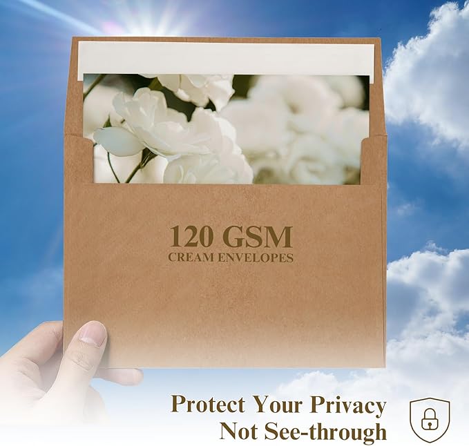 - Trusted Quality and Privacy: The brown postcard envelopes are made of FSC-certified paper, sturdy and thick enough to absorb pens, inks, colored pencils and watercolor paints without any ink or paint soaking through to the other side; The rsvp envelopes are also designed to reduce transparency, ensuring the privacy of the contents