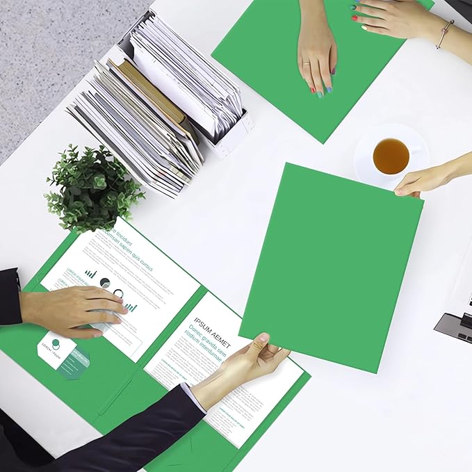 Two Pocket Folders, PANDRI 50 Pack 2 Pocket Folders, Letter Size Paper File Folder for School Office Home Business, Green