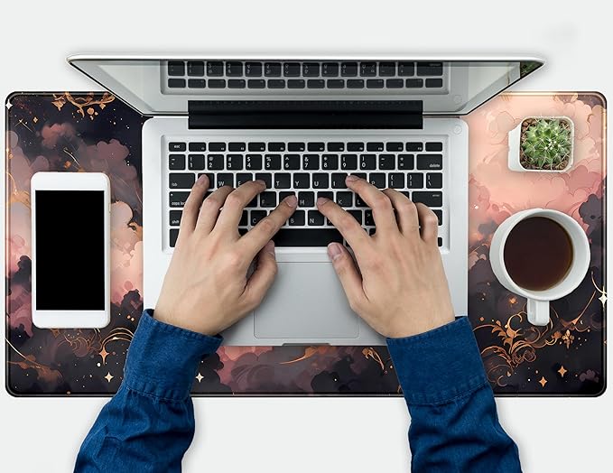 Pink Black Clouds Desk Mat XXL Large Extended Gaming Mouse Pad Celestial Mousepad with Stitched Edges, Office Desktop Decor Desk Pad Computer Mat, Laptop Keyboard and Mouse Mat, 31.5x15.75 in