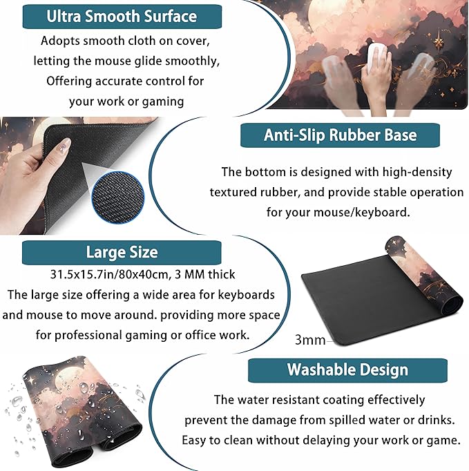 - 【31.5 x 15.75" Extended Size】This rectangular mouse pad is large enough to hold your mouse, gaming keyboard, MacBook, IPad. you can also use this extended mouse pad as a desk pad, writing pad, platform protector. Keep your desk clean and uncluttered