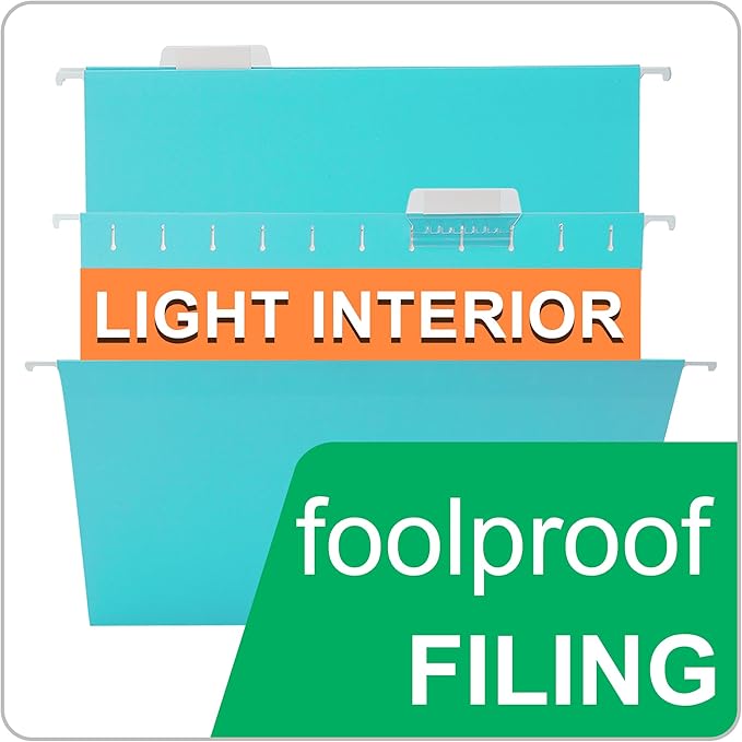 Cyan Blue Hanging File Folders,25 Packs Letter Size File Folder,Designed for Bulky Files,Filing Cabinet,1/5 Adjustable Tabs for Office,School,Home