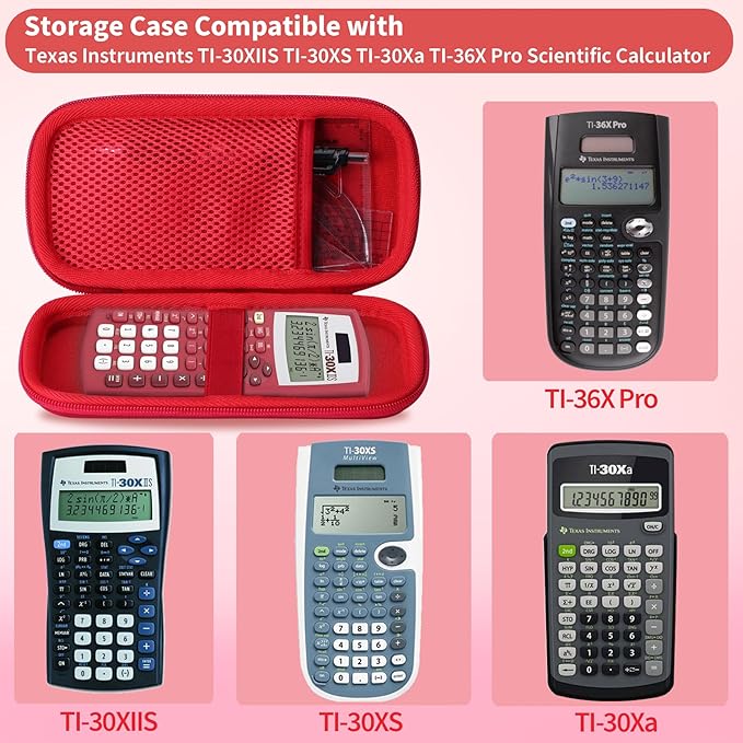 - This Peyyargo calculator storage case organizer accommodates Texas Instruments TI-30XIIS, Texas Instruments TI-30XS, Texas Instruments TI-30Xa, Texas Instruments TI-36X Pro and more scientific calculators. The upper mesh compartment organizing cables, pens, ruler and other stationery. And the rubber band in the center of the storage case lower cover can firmly fix the calculator inside the box, avoiding damage caused by shaking and impact when going out