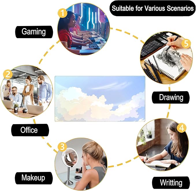 Blue Cloud XXL Large Extended Gaming Mouse Pad Computer Mat Aesthetics Mousepad, Office Decor Desk Pad, Laptop Keyboard and Mouse Mat, Non-Slip Desk Matt with Stitched Edge, 31.5''x15.7''