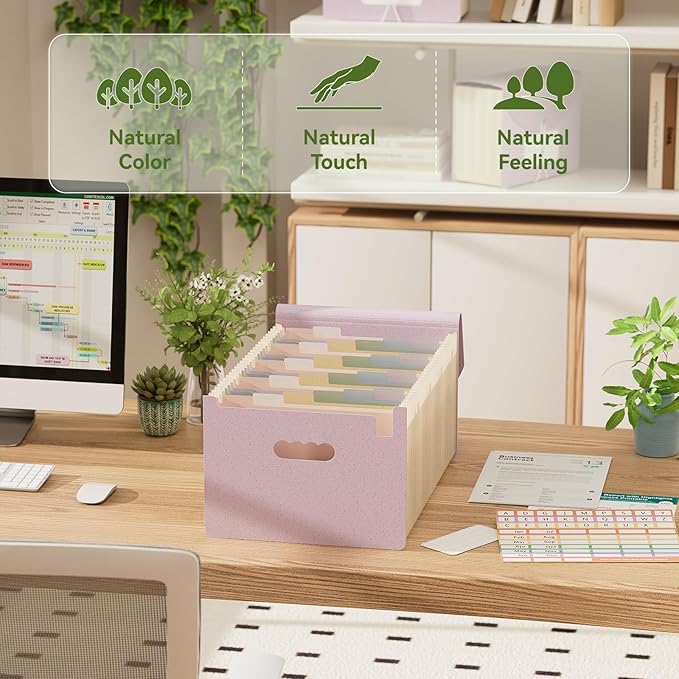- Natural Color Selection:EcoStash wheat straw Expanding File Folder have a unique texture and appearance. Available in 4 colors: Mint Green, Sky Blue, Wheat Yellow, and Strawberry Pink. Using different colors allows you to easily organize and distinguish documents. Its outstanding aesthetics allow you to experience the breath of nature in your daily use, adding a unique style to your document organization and protection.