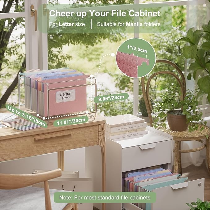 - EXPANDABLE POCKET, LARGE CAPACITY:This wheat straw expanding hanging file folder features a single pocket with a bottom that expands up to 3.15". Designed for Letter-size files and most standard file cabinets (L: 11.81"/30cm, H: 9.06"/23cm, fits MANILA folders). The extended 1"/2.5cm hooks adapt to more file cabinets. The expandable design grows with your monthly invoices, tax docs, or project files, preventing wear and tear.