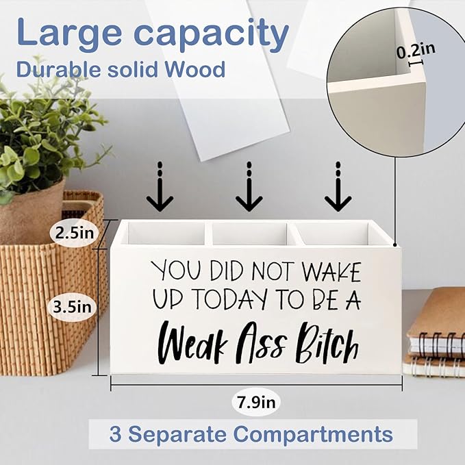 SNNDER Motivational Office Pen Holder for Desk, Inspirational Gifts for Women Men, You Did not Wake Up Today to Be a Weakass Funny Wooden Pen Pencil Holder Organizer for Home Office Desk Accessories