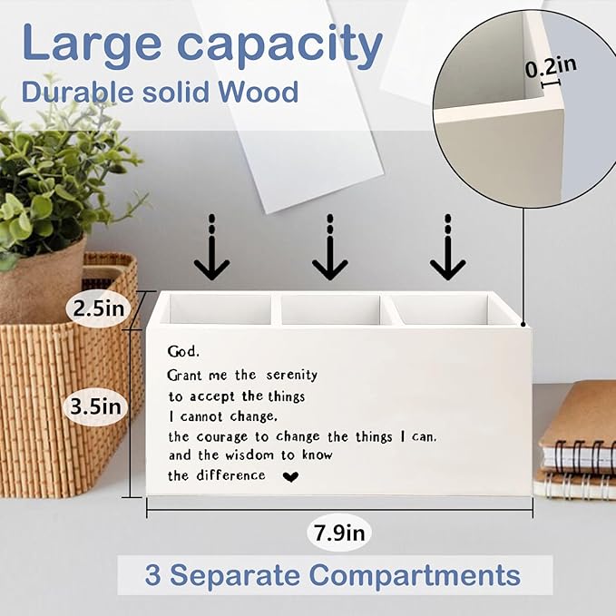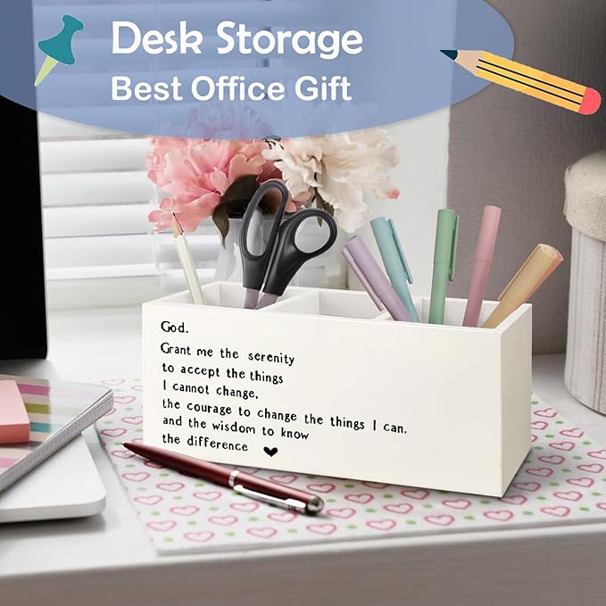 SNNDER Serenity Prayer Gifts Pen Holder for Desk, Christian Gifts for Women Men, God Grant Me the Serenity Bible Verses Wooden Pen Pencil Holder Organizer for Home Office Desk Accessories
