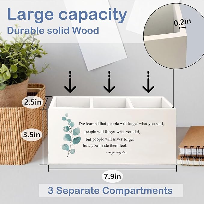 SNNDER Inspirational Maya Angelou Quote Pen Holder, Motivational Desk Decor, Inspirational Positive Gifts Wooden Pen Pencil Holder Organizer for Home Office Desk Accessories