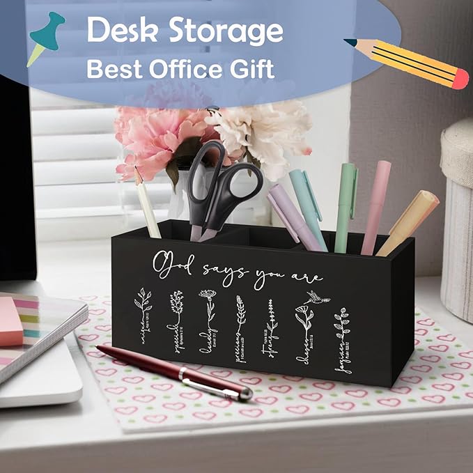 SNNDER Gods Says You are Floral Christian Pen Holder for Desk, Christian Gifts for Women Inspirational Religious Bible Verses Wooden Pen Pencil Holder Organizer for Home Office Desk Accessories