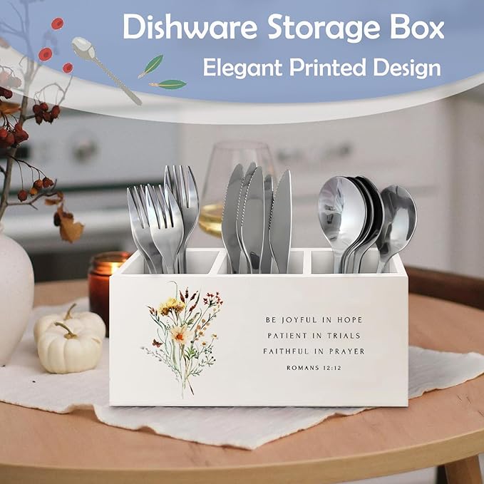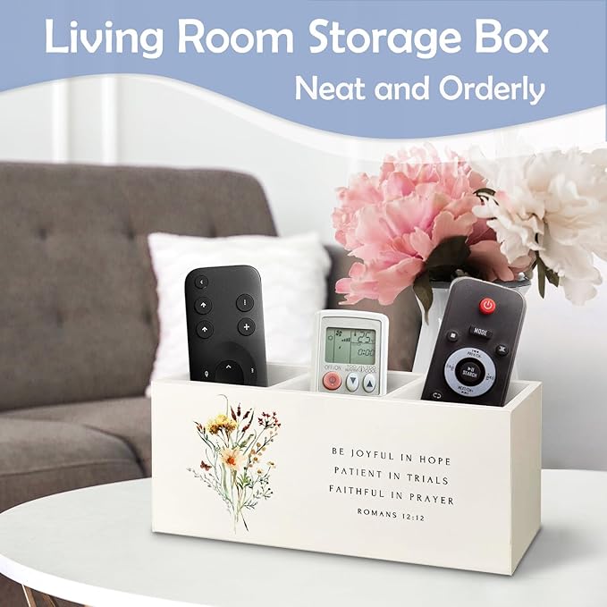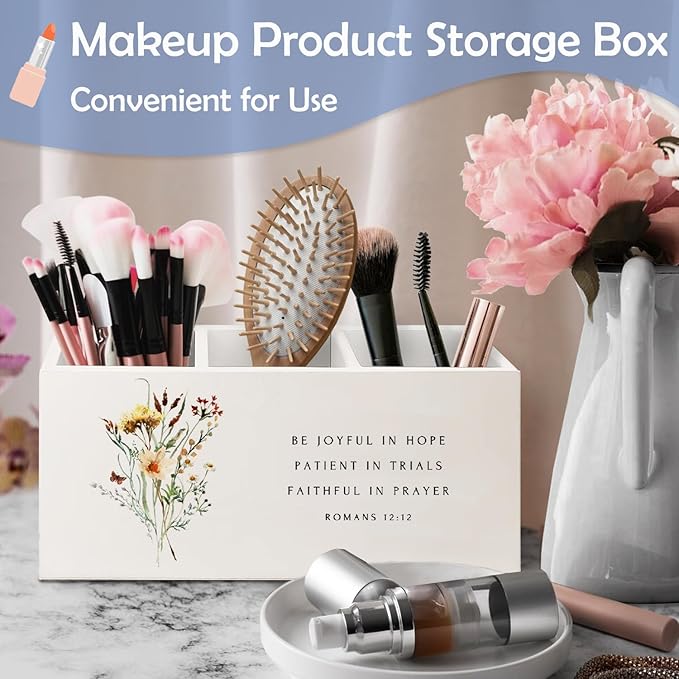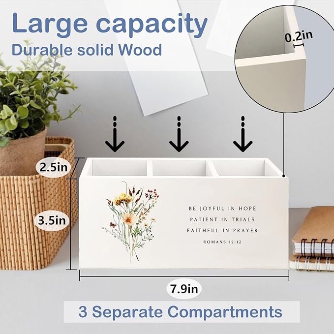 SNNDER Floral Christian Pen Holder for Desk, Christian Religious Gifts for Women, Romans 12:12 Bible Verses Wooden Pen Pencil Holder Organizer for Home Office Desk Accessories
