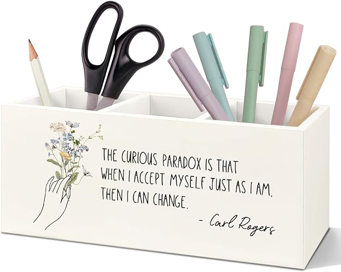 SNNDER Psychology Gifts for Women Pen Holder for Desk, Therapist Psychotherapist Social Worker Gifts Wooden Pen Pencil Holder Organizer for Therapist Counselor Office Desk Accessories