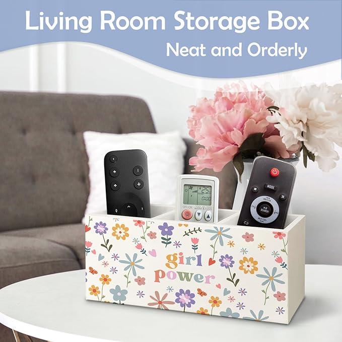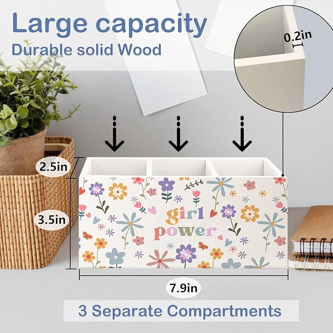 SNNDER Girl Power Pen Holder for Desk, Feminist Gifts, Female Women Empowerment Gifts, Wildflower Floral Aesthetic Wooden Pen Pencil Holder Organizer for Home Office Desk Accessories