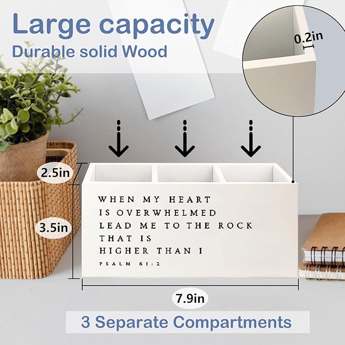 SNNDER Inspirational Christian Pen Holder for Desk, Christian Religious Gifts for Women Men, Psalm 61:2 Bible Verses Wooden Pen Pencil Holder Organizer for Home Office Desk Accessories