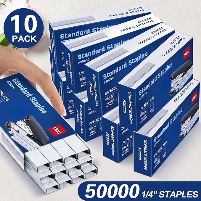 - 50,000 STAPLES – The multi-pack comes with 10 boxes, 5,000 staples in each. Each strip has 210 staples, allowing you to keep on stapling through long projects without running out.