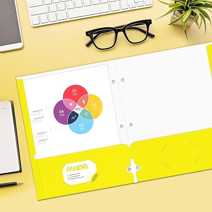 Two Pocket Portfolio Folders, PANDRI 60 Pack 3 Hole Punched 2 Pocket Folders for 3 Ring Binder, Letter Size Paper File Folder for School Office Home Business, Yellow