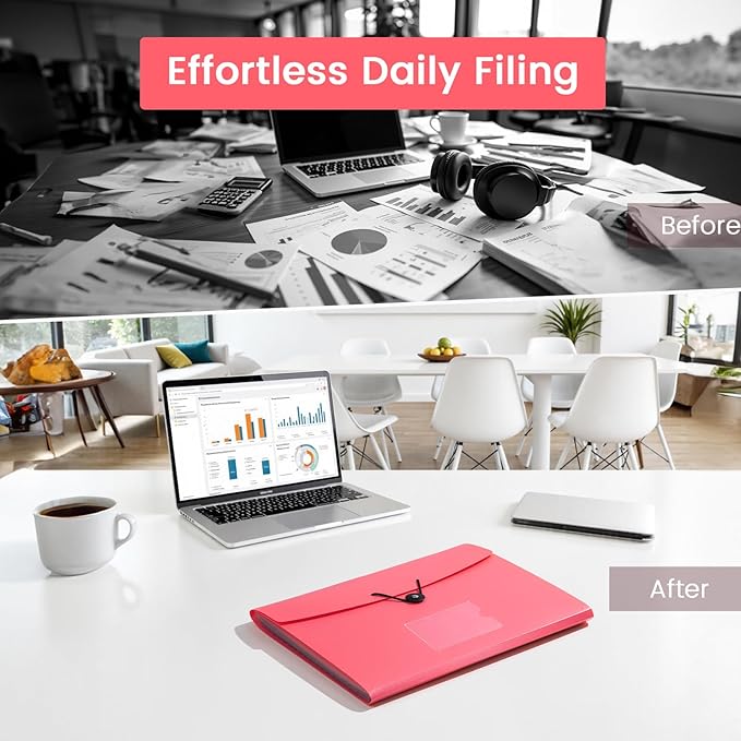 - Elastic Buckle Design: The expanding file folder features a flap with elastic cord closure, protecting documents safe and firmly in place during transport
