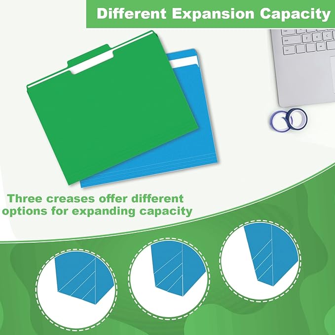 - MULTIPUERPOSE: Our 1/3 cut tab file folders can be used in file cabinets, drawers, school, office, and desk organizer, ect.