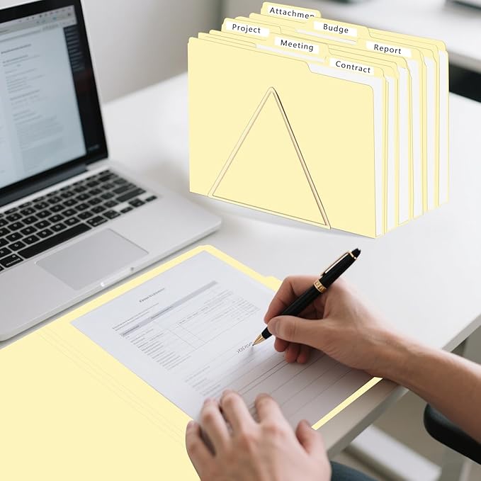- ECONOMICAL & ECO-CONSCIOUS: Protect the environment by using tabs made with recyclable paper. Recyclable manila filing folders (30-count) for neatly storing and organizing documents.