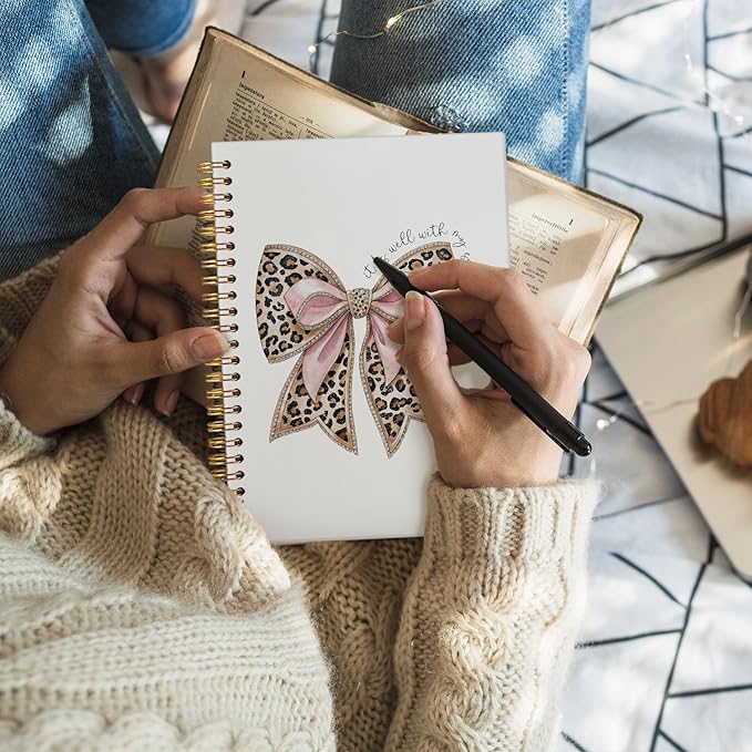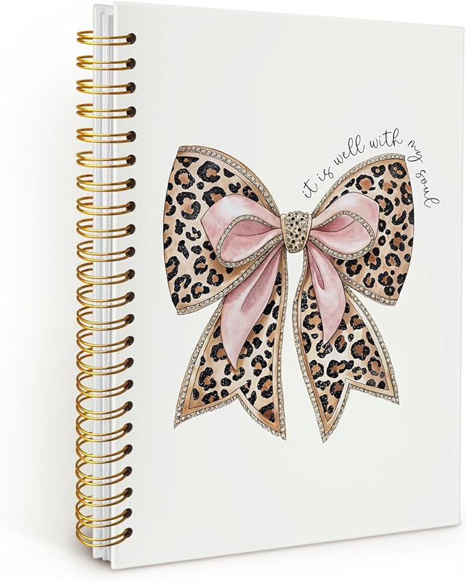 Leopard Coquette Bow Christian Spiral Notebook, Christian Notebook for Women, Religious Prayer Journal for Woman, It is Well with My Soul Scripture Hardcover Notebooks 5.5x8.3