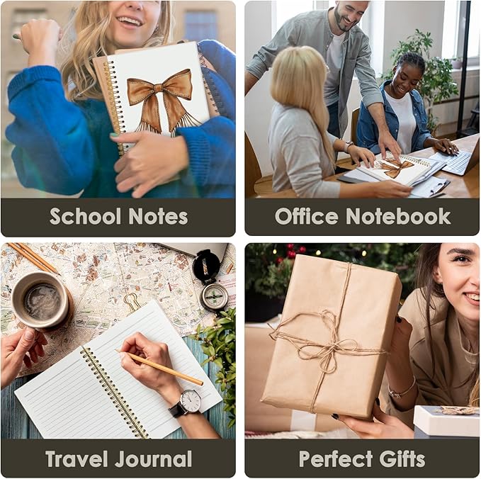 - STYLISH & DURABLE DESIGN: Featuring a feminine bow pattern and double coil binding, this notebook combines style and durability, perfect for office, school, or home use.