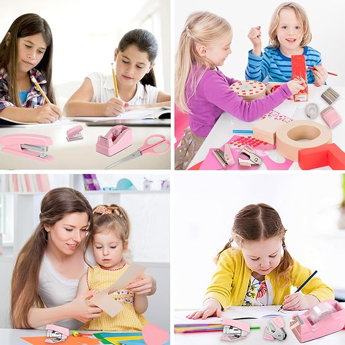 - 【Premium Material】Our mini office supplies set is mainly made of ABS material, which is sturdy, durable, clear and bright. Staplers and tape dispensers are mainly made of high-quality plastic and metal materials, with a smooth and comfortable feel, not easy to break or deform, durable and beautiful. Suitable for home, school, office and other occasions.