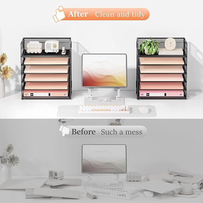 - User-friendly Desk Organizer: This desk paper organizer comes with a screwdriver and an installation instruction, easy to install in minutes. Handles for easy movement, sliding trays for adjustability, open design for quick item identification