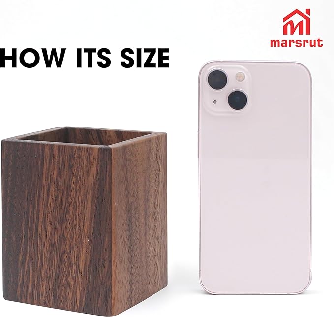 - Package: 1 x Wooden Square Pen Holder. Size: 4.02 x 3.13 x 3.13 inches. It's the right size and capacity for your daily needs.