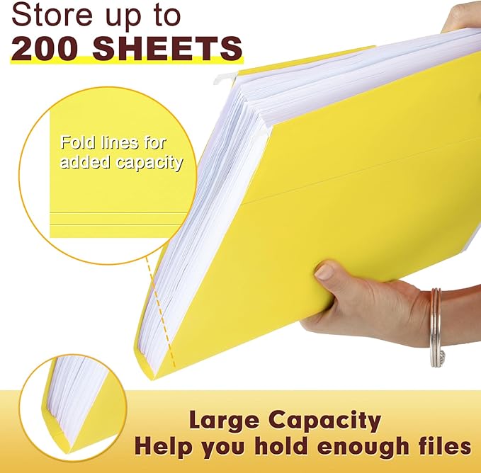 - PREMIUM QUALITY: Reinforced Letter Size Hanging Folders with Heavy Duty Expansion. The top edge of the hanging folder is reinforced with composite glue, and the bottom fold is paired with cardboard supports.