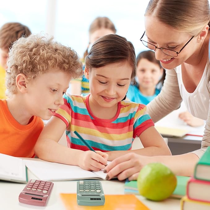 - Basic Calculator: the mini calculator for kids has automatic tax keys, percent key, square root key, backspace key and 4 key independent memories, including memory plus, memory minus, recall memory and clear memory, equipped with an LCD display, which can display up to 8 digits, ideal for office, school or home use