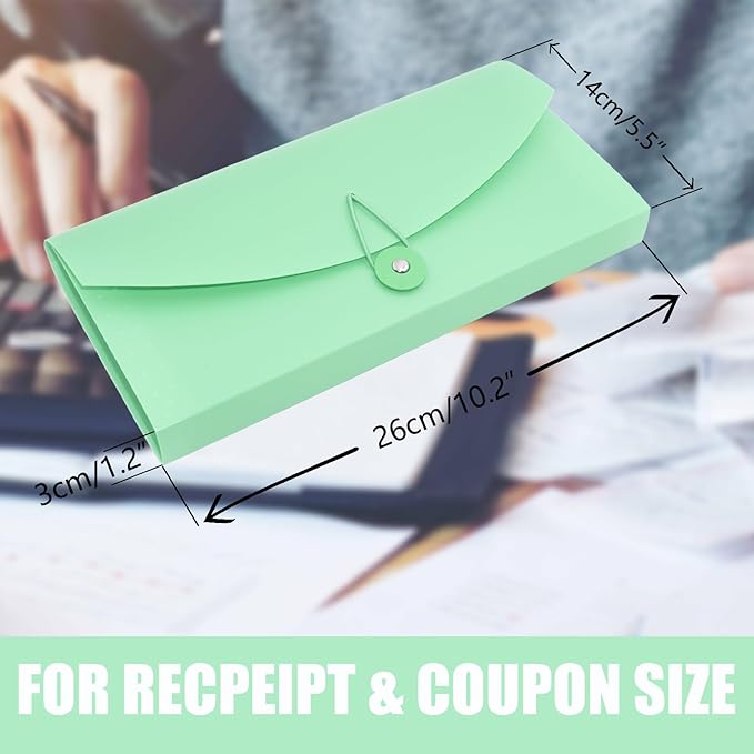 Small Accordion File Organizer - 13 Pocket Expanding Folder for Receipts, Bills, and Envelopes - Money Saving Binder (Green)