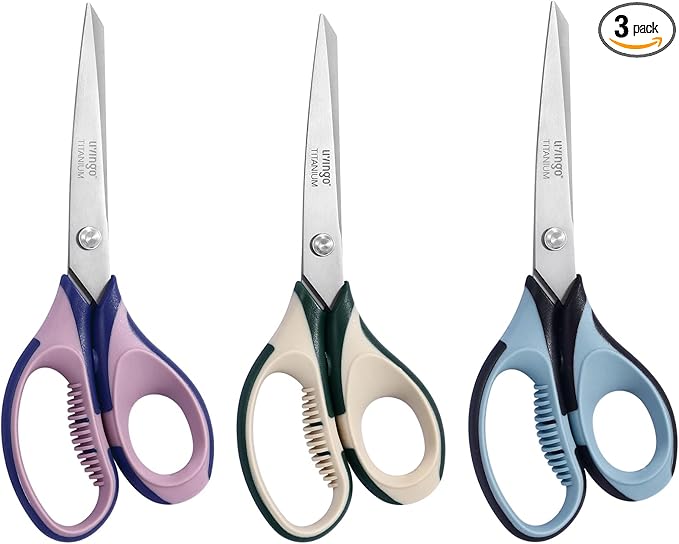 LIVINGO 3 Pack Office Scissors All Purpose – Titanium Coated Blades, Ergonomic Colorful Handles, Sharp Heavy Duty Shears for Home, Office, and Craft Use