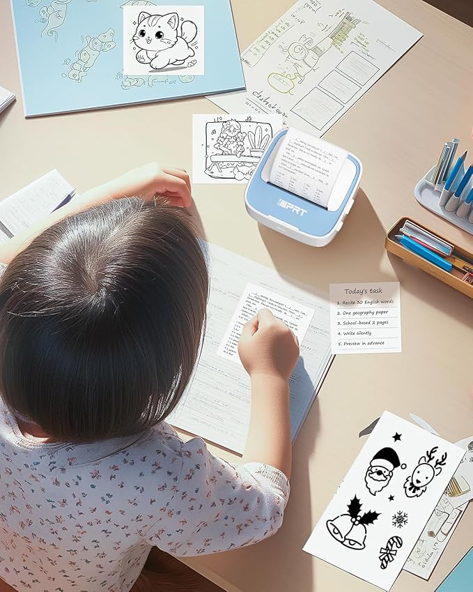 iDPRT Sticker Maker, Portable Thermal Printer with 1 Roll Sticker Paper, Bluetooth Inkless Printer Mini Label Maker for Study, DIY, Notes, Mini Label Maker with Multiple Template in Free App (Blue)