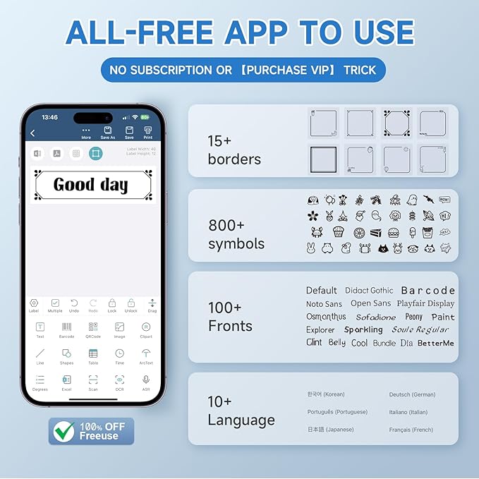 - Easy to Use:Download app and start creating labels without registration or account setup required