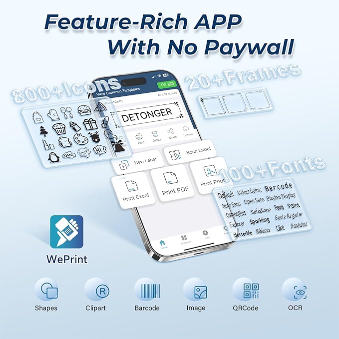 - Easy to Use: You can use the APP to create a variety of unique labels and print them out(Pre-cut length labels, max label width 0.5")