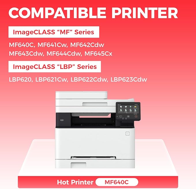 - Compatible Printers: Compatible with Canon ImageCLASS “MF”Series:MF640C MF641Cw MF642Cdw MF643Cdw MF644Cdw MF645Cx, ImageCLASS “LBP”Series:LBP620 LBP621Cw LBP622Cdw LBP623Cdw.