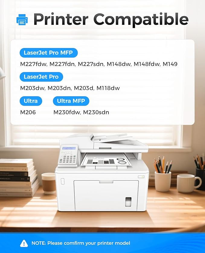 - Compatible Printers: Compatible with HP LaserJet Pro MFP M227fdw M227fdn M227sdn LaserJet Pro M203dw M203dn M203d Ultra M206 Ultra MFP M230fdw M230sdn LaserJet Pro M118dw LaserJet Pro MFP M148dw M148fdw M149 Series Printer