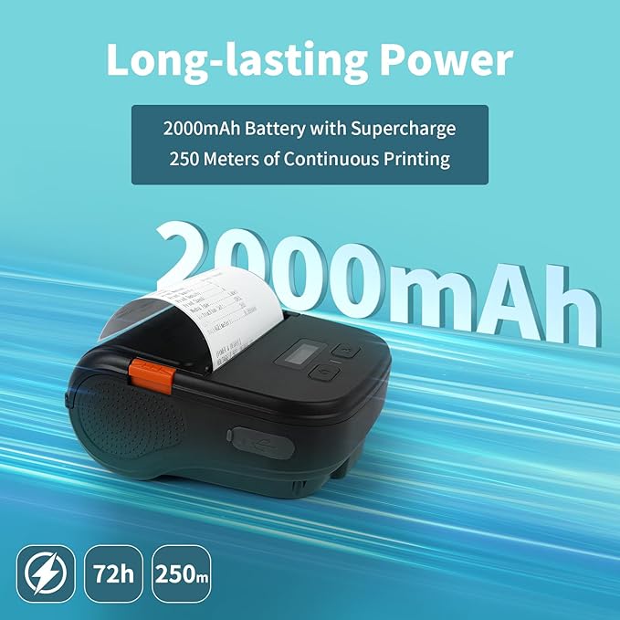- Super Compatibility:The label printer is designed for convenience and portability, weights only 0.99lb and easily store into pockets, bags, or backpacks. With its lightweight build and built-in 2000mAh rechargeable battery, it can continuously print up to 30rolls of labels on a single charge. Whether you're at the office, on the go, or in a shop, the portable label maker ensures efficient and hassle-free label printing anytime, anywhere.Direct thermal label printer bring more convenience to your business.