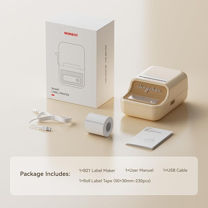 - 【A Multifunction Label Printer】NIIMBOT B21 Pro bluetooth label maker machine supports label width from 20 to 50mm, perfect for home (kitchen food and spices jars, bottles,storage boxes, homemade food,return address), for small business (price,product info, QR code, barcode, brand logo,ads), for school (name tag, teacher fast feedback label,clothes label,cup label)