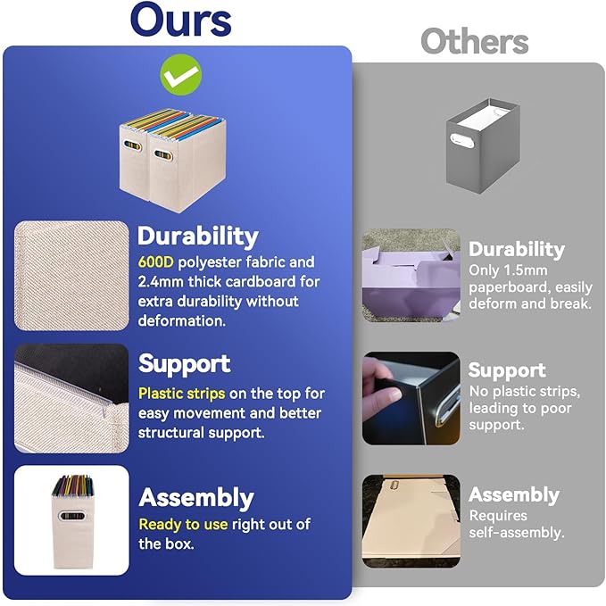 - Easy to Assemble: Simply unfold the organizer, insert the thickened bottom panel, and it's ready to use in just 10 seconds. When not in use, it can be folded flat to save space. The open-top design allows for quick and easy access to your files, improving efficiency