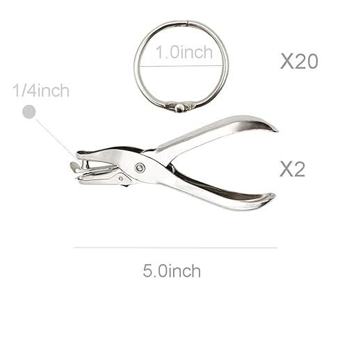 - 2 Pack single hole punch(1/4Inch hole size) with 20Pcs binder rings(1 inch diameter )