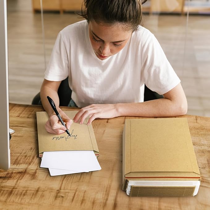 50 Pack 7x9 inch Kraft Rigid Mailer Self Seal Photo Document Mailers, Stay Flat Kraft Cardboard Envelopes Photography Mailers for CD, Photos, Document