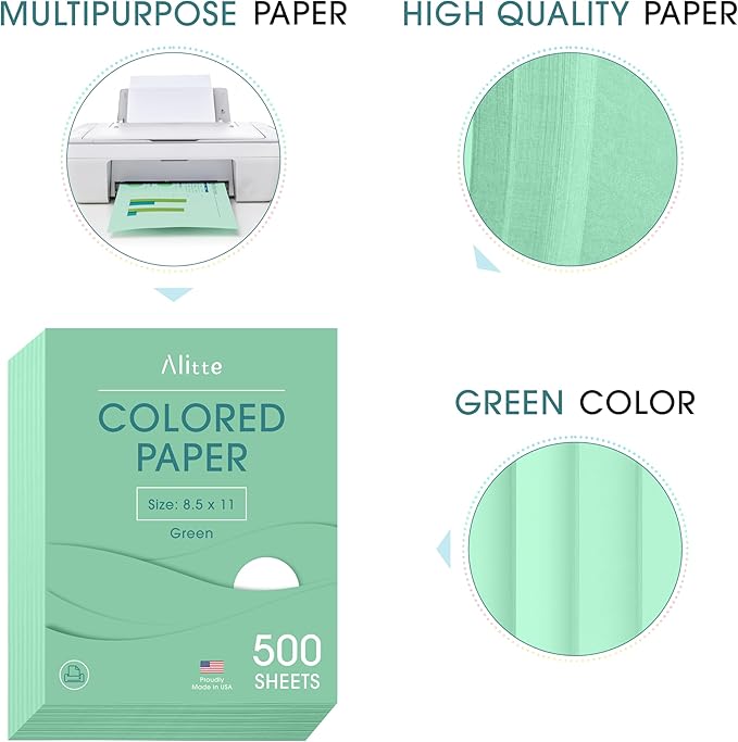 Colored Paper 500-Sheets - Green Paper, 8.5 x 11 Colored Printer Paper, Arts & Crafts, DIY Projects - School & Office Supplies - Pastel Copy Paper, 1 Ream, Made in the USA