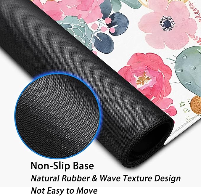 Watercolor Flowers Desk Pad Mouse Pad,Large Floral Mouse Mat with Stitched Edges,Non-Slip Rubber Base Mousepad for Office PC Keyboard Laptop and Home Work Desk Mat(27.5X11.8 in)