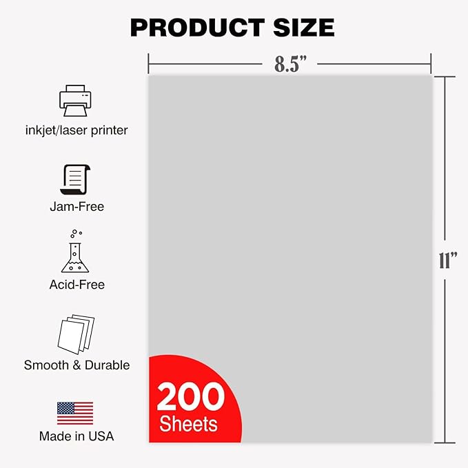 - Sheet Size : 8.5 x 11 Inches