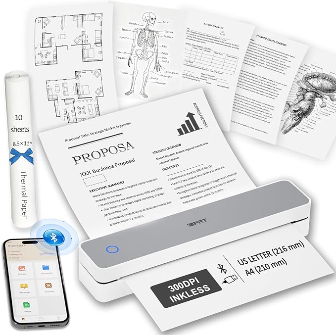 - ✅ Inkless Portable Printer – No Ink, No Mess! Say goodbye to cartridges and toner! The iDPRT 610Pro portable printer uses advanced thermal technology for clean, cost-effective, 300DPI printing—anytime, anywhere. Includes: printer, 10 sheets thermal paper, USB-C cable & free app.(⚠️ Only compatible with black & white thermal paper. Not for inkjet/laser paper).